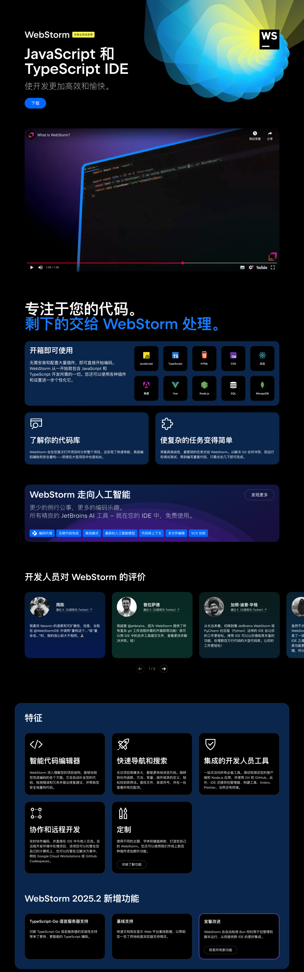 无需安装和配置大量插件,即可直接开始编码。WebStorm 从一开始就包含 JavaScript 和 TypeScript 开发所需的一切。您还可以使用各种插件和设置进一步个性化它。