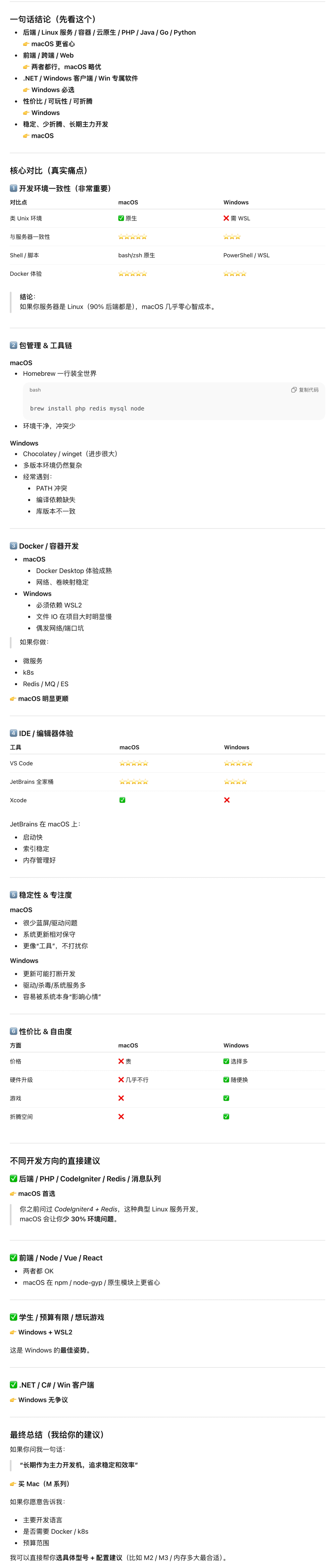 在macos还是在windows环境开发,一直饱受争议,结合ai和个人开发经验,总结了一些结论